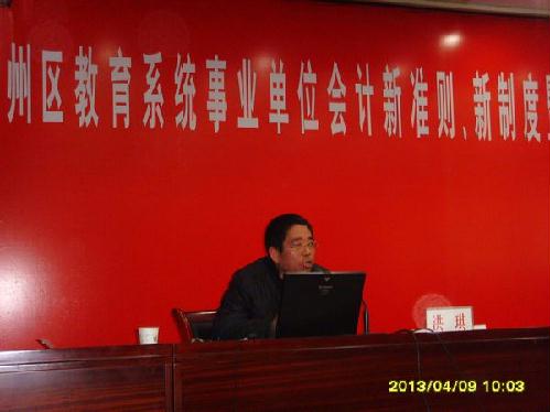 4月9日,全区教育系统各完中、职业中学、初中、小学、局直幼儿园,各教育督导组、教育局机关、局直事业单位总账会计及执行会计证人员在行政中心第一会议室接受了为期一天的事业单位会计新准则、新制度暨2013年会计人员继续教育培训。