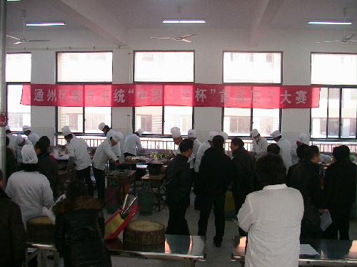 12月22日,南通市通州区教育局勤工俭学办公室组织的首届学校食堂从业人员厨艺大赛在区实验小学金桥校区进行。此次比赛活动聘请通州区餐饮协会国家特级厨师曹澄及通州中专烹饪教师国家二级厨师丁志强等5人作为专业评委,现场打分。区教育局副局长朱新华、王笑梅、局长助理刘新出席开幕式,韩建局长观摩了比赛。出席比赛的有完中组和初中小学组,共26个队,每队3人由分管后勤的副校长或总务主任领队,经过长达4个小时的比赛,完中组1、2、3名分别被江苏省通州高级中学、江苏省平潮高级中学、江苏省西亭高级中学夺得,初中小学组1、2、3名分别被通州区张謇学校、通州小学、杨港初中夺得,并现场发放了荣誉证书。