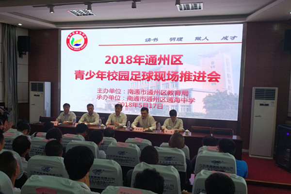 5月17日上午,我区2018青少年校园足球现场推进会在通海中学召开。南通市教育局局长助理葛俊、沙晓峰处长、区教育局张进荣局长、胡清华副局长、曹志荣科长出席了本次会议。参加此次会议的还有全区中小学校长和分管校长、各教育督导组组长与分管体育的领导近200人。会议由教育局曹志荣科长主持。