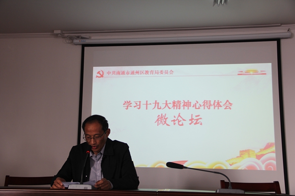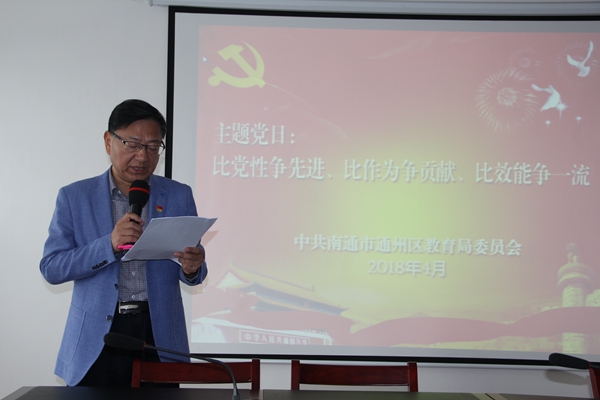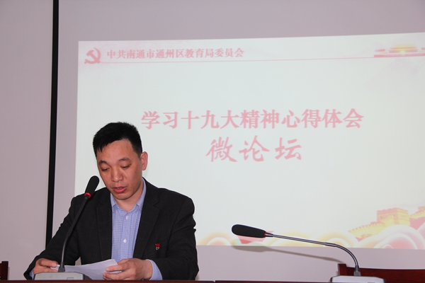 区教育局机关党总支书记钱国华在会上指出,认真学习、深入领会、大力宣传、全面贯彻党的十九大精神,是当前和今后一个时期教育系统的首要政治任务。教育系统每位党员,尤其是承担部门职责的局机关、教育督导室以及局直单位的每一位党员,更要把学习好、宣传好、研究好、落实好党的十九大精神作为当前和今后一个时期的首要政治任务,同时通过“比党性争先进、比作为争贡献、比效能争一流”活动,促使全体党员讲规矩、重人品,强本领、勇担当,进一步激发新活力,增添新动力,营造勇于担当、主动服务,奋发有为、比学赶超的良好氛围,把党的十九大精神转变为做好本职工作、推进事业发展的思想自觉和行动自觉,为加快建设“强富美高”新通州凝聚强大合力。