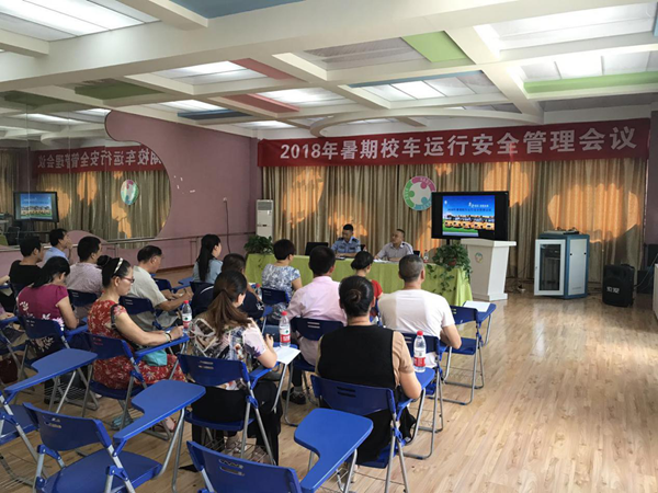 7月19日上午,区教育局联合区车管所在皇都宝贝幼儿园召开2018年暑期校车运行安全管理会议。会上,教育局安全管理科吴小虎科长通报了今年以来全国各地发生的校车安全事故,重申了校车管理员、校车驾驶员、校车随车照管人员的职责,并对下一步的校车管理工作提出了具体要求。区车管所黄晓城副所长针对校车的日常管理、校车驾驶员的安全驾驶等方面又重点提出了要求。