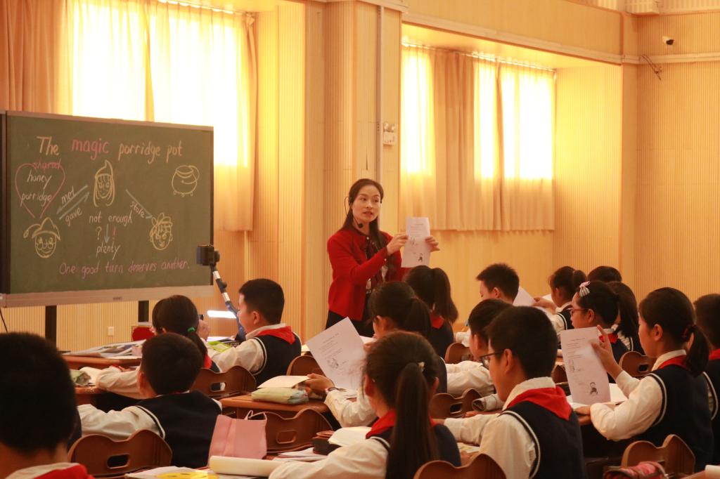 根据比赛的特殊性,实小磨课团队积极制定备赛方案,制定了“追寻教育的初心,回归教育的本源”的参赛思路。在主题研究课中,黄伟慧老师紧紧抓住故事眼“One good turn deserves another”,层层深入推进阅读,学生在立体深度的阅读中感受到阅读和思考带来的快乐。黄老师的课堂中,学生大胆表达,妙语连珠,引得观摩老师啧啧称赞。最终,黄老师以扎实全面的教学基本功,清新活泼的教学风格,巧妙独特的教学设计,游刃有余的课堂表现力从众多实力强劲的选手中脱颖而出,赢得专家评委的交头称赞,斩获殊荣。
