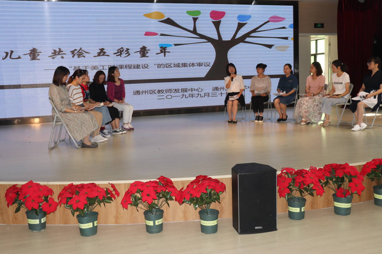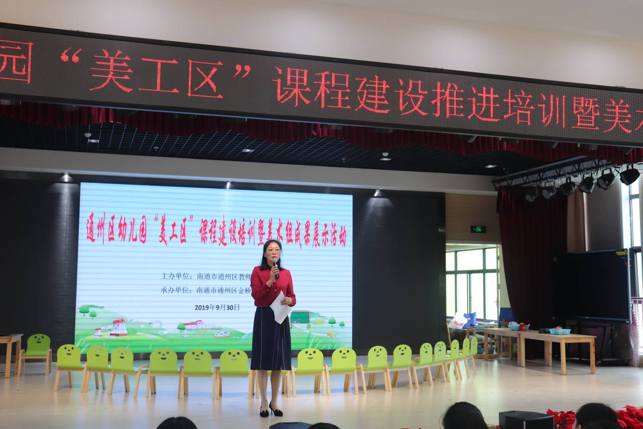 为进一步深入贯彻《3-6岁儿童学习与发展指南》精神,学习理解并逐步落实《省教育厅关于加强学前教育教研工作的意见》,持续推进区域课程改革,9月30日,由通州区教师发展中心主办,通州区金桥幼儿园承办的通州区幼儿园“美工区”课程建设推进暨美术中心组阶段研究成果展示活动如期举行。区教师发展中心专职教研员徐玲艳、区教体局基教科幼教专干王向红、美术中心组全体成员及全区各幼儿园教研负责人等近百名老师参加了此次活动。