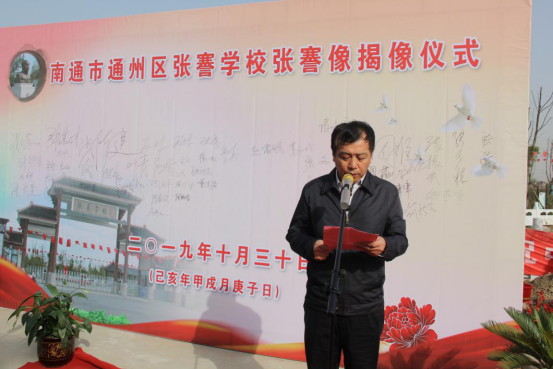 区政协副主席顾建军在致辞中指出,张謇不仅是清末民初著名的实业家、教育家,同时也在建设新社会,探索国家民族发展新道路上作出了艰苦卓绝的努力,发挥了重要的作用。终其一生,对于百姓,对于南通,张謇的爱炽热张扬,历久弥真,从未消散。他认为在张謇学校举行“张謇塑像揭像仪式”,这不仅是打造学校文化的重要载体,同时也是在全社会弘扬张謇精神、宣传张謇文化的有效形式。