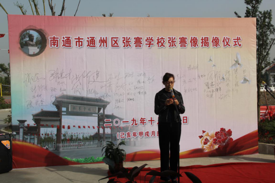 (张謇学校副校长成莉主持张謇像揭像仪式)