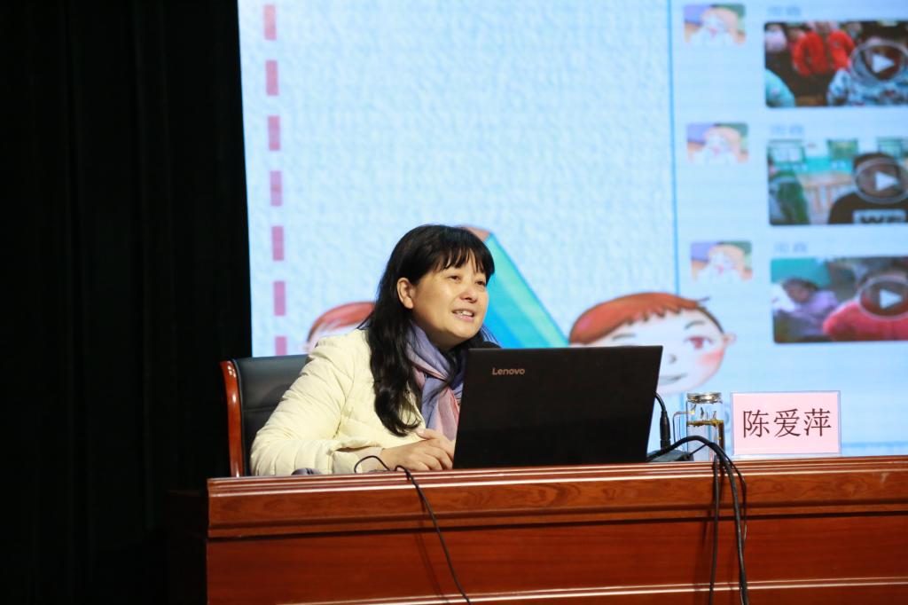 南通市教育科学研究院陈爱萍老师作了题为《树质量意识 做适宜课程》的讲座。陈老师以“把‘质量’作为动词来看待”开场,以“学者”的视角,通过生动活泼的视频、丰富多彩的游戏场景、贴近生活的教育案例等,让在座的老师们深刻了解到如何做好属于儿童的课程,为全区课程游戏化新一轮的推进作了有力的铺垫。