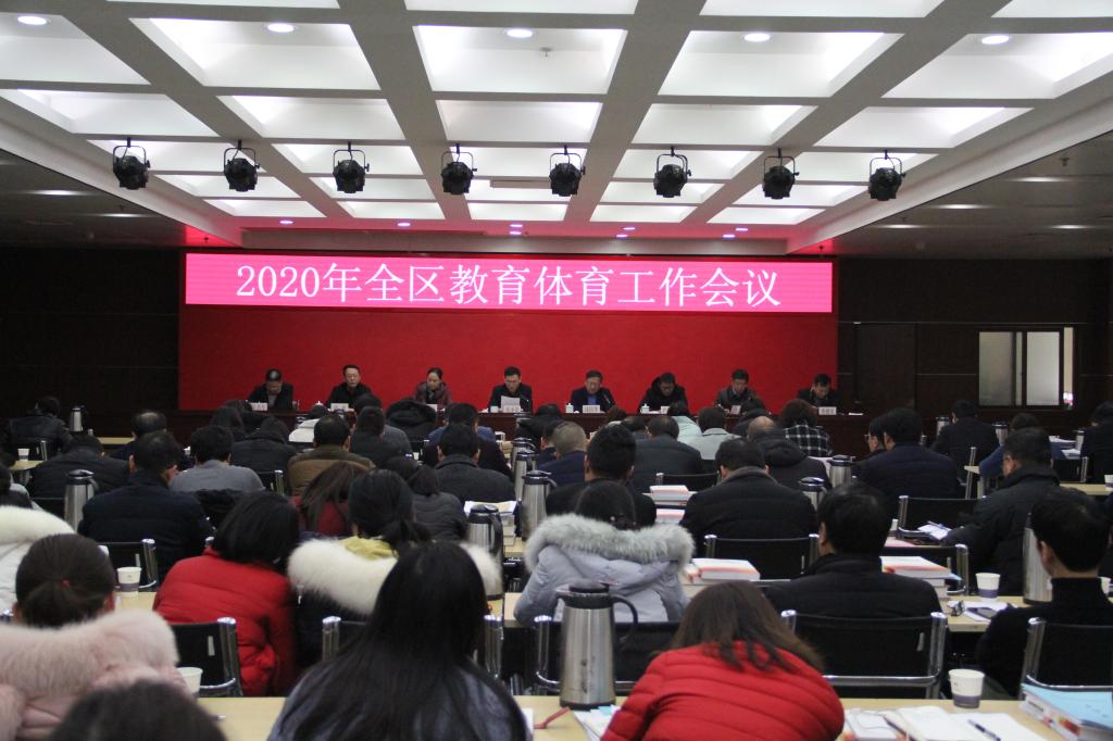 1月15日下午,全区2020年教育体育工作会议在行政中心第一会议室召开。会议回顾总结去年以来所取得的成绩,同时部署2020年全区教育体育工作。全区各级各类学校、幼儿园、社区教育中心主要负责人,各教育督导组组长,局直单位负责人,老干部代表,局机关中层以上干部等180余人参加会议。