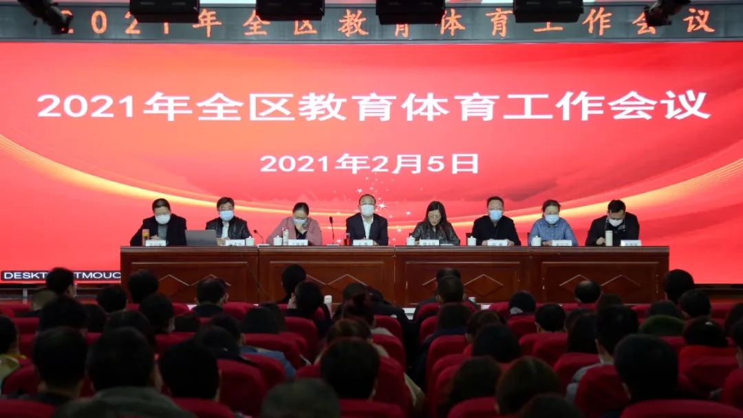 为深入贯彻党的十九大和十九届二中、三中、四中、五中全会精神,认真落实全国、全省、全市教育工作会议决策部署,回顾总结2020年全区教育体育工作,研究部署2021年全区教育体育重点工作,2月5日,区教体局在文山初中召开2021年全区教育体育工作会议。区教体局领导班子成员、各科室主要负责人,各中小学、职业学校、幼儿园、社区教育中心主要负责人,各教育督导组组长参加会议。会议由区教体局党委副书记、区政府教育督导室专职副主任薛小玉主持。