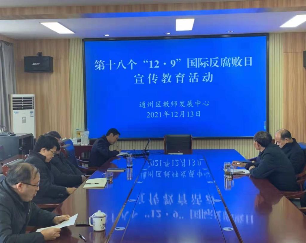 为深入学习贯彻党的十九届六中全会精神,纪念第十八个国际反腐败日,12月13日,区教师发展中心召开全体研训员会议,围绕“培育廉洁理念,弘扬清风正气”活动主题,开展“12·9”国际反腐败日宣传教育活动。
