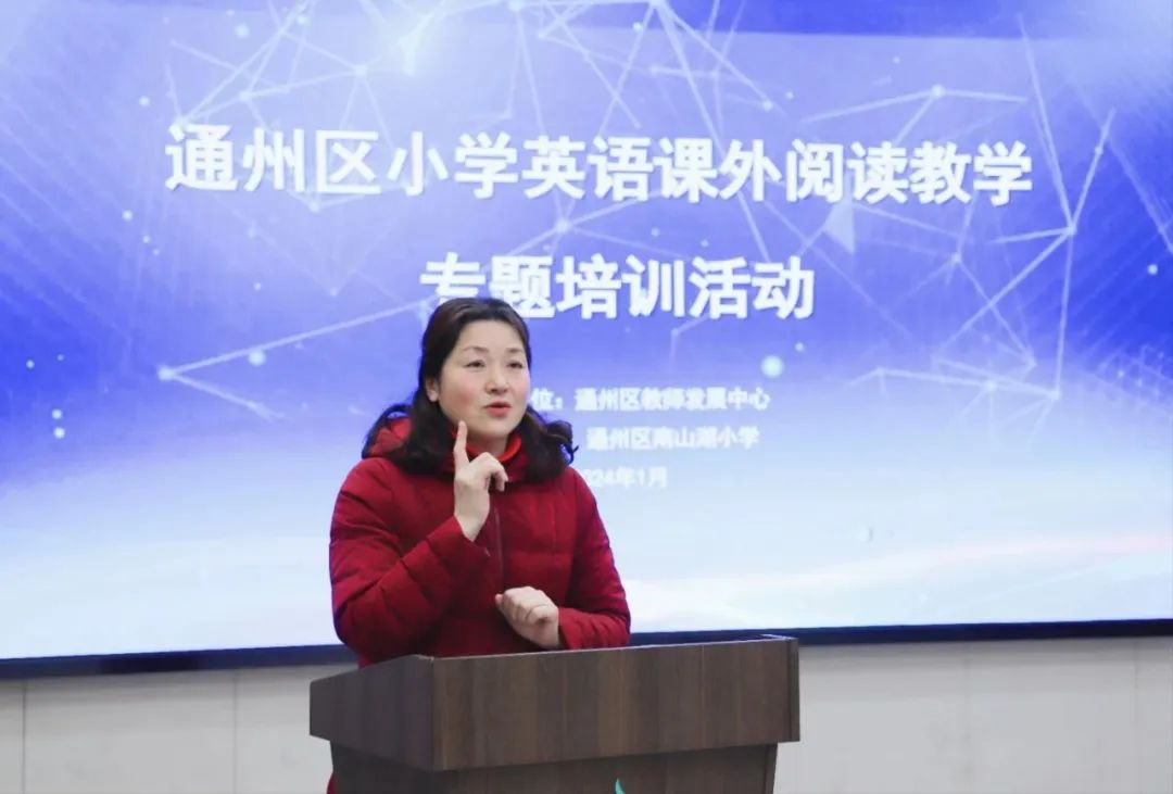 为进一步深化小学英语课堂教学改革,落实《义务教育英语课程(2022年版)》要求,推进“立学课堂”教学实践,优化小学英语阅读教学,探索课内外融合阅读的有效途径,提升学生的阅读素养,1月17日,通州区“小学英语课内外阅读教学”专题培训活动在通州区南山湖小学成功举办。