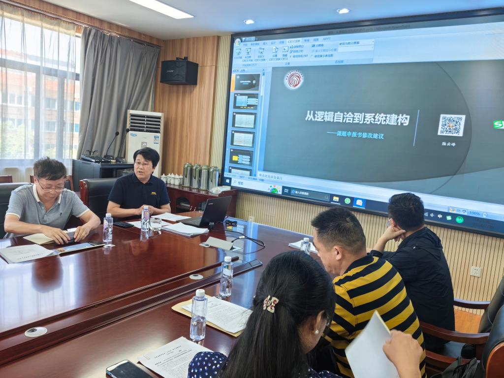 区教师发展中心副主任陆云峰简单介绍了本次课题申报的基本概况,重点就课题名称及《课题评审书》中“相关文献述评”“核心概念界定”“研究内容分解”“主要观点提炼”“研究方法选择”“研究成果预设”等方面,逐一对拟申报课题进行了细致深入的点评分析,还给出了中肯可行的修改建议。他表示,课题方案的设计既要做到逻辑自洽,还要能够系统建构,确保课题研究的规范性、科学性。区教师发展中心教育科研室副主任陈钰枢对本次课题网络申报的操作流程作了具体说明和友情提醒。本次活动由区教师发展中心教育科研室副主任蒋忠主持,并从“思想上要更重视”“分工上要更细致”“落实上要更主动”三个方面提出更明确的要求。