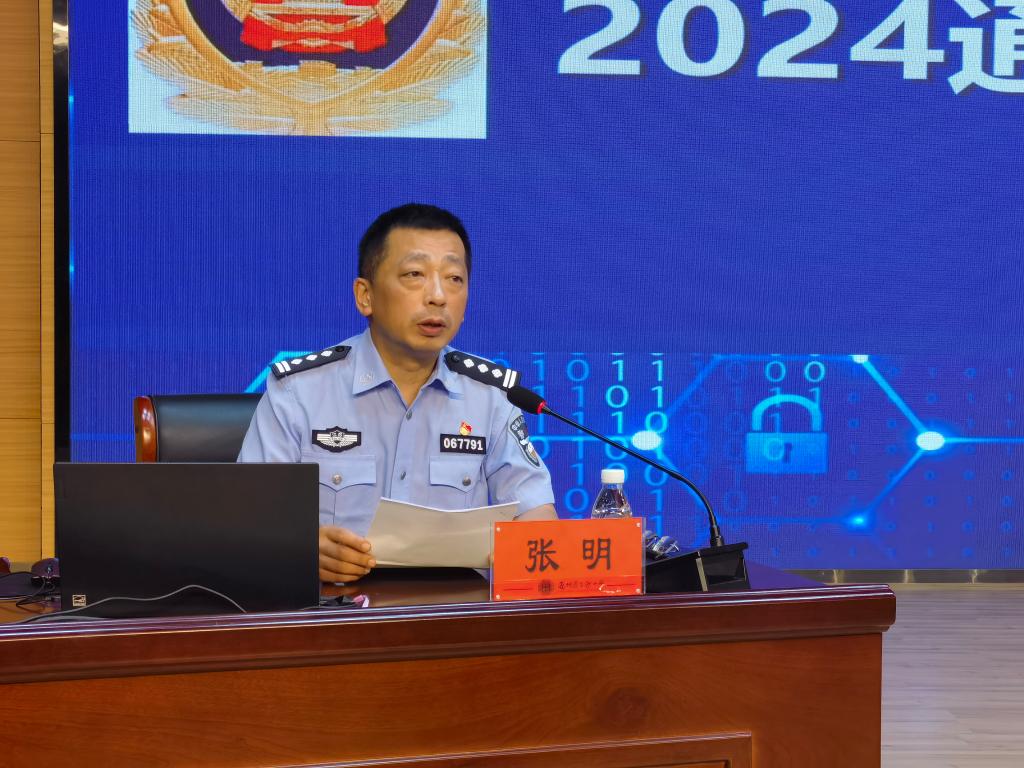 区网安大队张明就目前国际国内网络安全形势、我区网络安全现状、学校在网络安全方面应落实的举措三个方面作了交流。