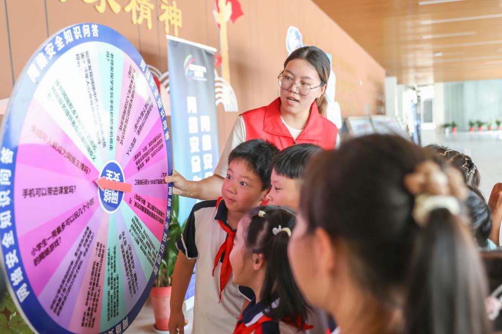 活动现场,主题作品展、互动游戏、签名承诺、主题班会等环节精彩纷呈。学生们通过绘画、书法等形式表达对网络安全的认识,跳格子、大转盘等游戏将网络安全知识巧妙融入闯关环节,让学生在玩中学、在学中悟。