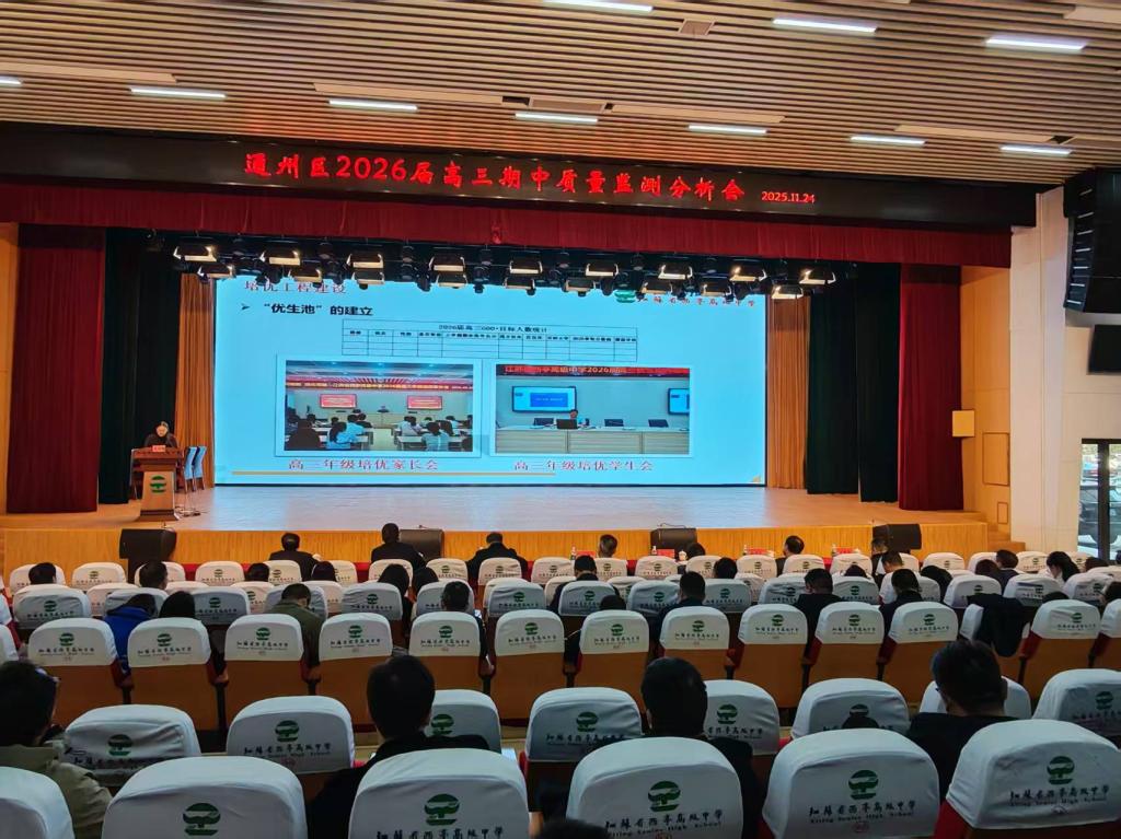 为深入分析全区2026届高三期中质量监测数据,精准诊断问题,及时调整举措,提升备考效率,11月24日,通州区2026届高三期中质量监测分析会在西亭中学召开。区教体局党组书记、局长严巍出席会议并讲话。
