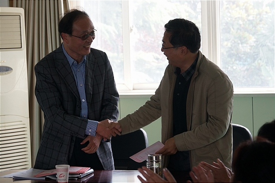 历史教研员徐新老师在讲话中全面阐述了通州区高中历史中心教研组成立的意义:一是整合区内骨干教师力量,增强研究力;二是提升业务水平,成为三能型(能上课、能命题、能研究)教师;三是名至实归,真正发挥骨干教师的示范、引领和辐射作用。他还简要地分析了中心教研组的人员构成和分布情况,真诚地希望大家承担起研究职责,勇于展示,挑战自我,提升自我,超越自我,做一个“快乐幸福的教育人”。