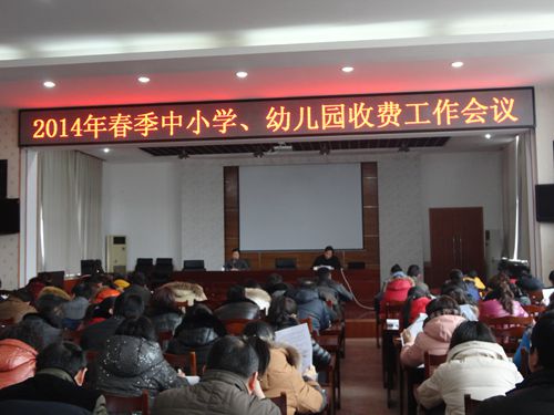 2月13日下午,2014年春季全区中小学、幼儿园收费工作会议在通州小学六楼会议室召开,各完中、职业中学、局直学校财务管理员,各教育督导组会计,以及其余50所幼儿园园长参加了会议。