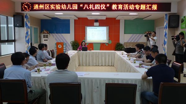 5月26日上午,由省教育厅基教处副处长顾春明和省文明办未成年人处马如俊等领导组成的省未成年人文明养成教育督查组来到区实验幼儿园,对我区未成年人文明养成教育活动进行专题调研。领导们现场察看了区实验幼儿园“八礼四仪”主题教育活动环境创设情况,与小朋友们亲切交谈,并观看了大(7)班小朋友表演的“八礼四仪”情景剧《厨房小精灵》。区实验幼儿园朱红霞园长作了文明礼仪教育活动专题汇报,省、市、区领导对实验幼儿园根据幼儿教育的特点,开展富有成效的文明礼仪故事化特色教育活动给予了充分肯定。 南通市委宣传部副部长、市文明办主任陈冬梅,市文明办副主任李洁,市教育局副局长金海清,市教育局基教处副处长陈斌,以及通州区委常委、宣传部部长胡卫东,区委宣传部副部长、区文明办主任陈益民,区文明办副主任张汉忠,区教育局副局长钱国华等陪同调研。(朱红霞)