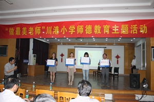 5月27晚,川港小学怀远楼报告厅灯火通明,氛围热烈,“做最美教师”师德教育主题活动正在这里举行。