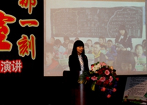 “走进教室的那一刻,我希望自己是一滴水,当爱的阳光照射到我身上时,会毫无保留的反射给我的学生;走进教室的那一刻,我希望自己是滴滴甘露,给学生送去冲破冻土的力量,带给学生自信和阳光;走进教室那一刻,我希望自己是一个充满爱心的老师,用浓浓的爱编成一束束美丽的鲜花,给孩子们带去无限的芬芳……” 4月18日下午,在张芝山小学开展的“责任在肩,走进教室的那一刻”青年教师演讲活动中,刘艳老师声情并茂的演讲一次又一次触动着老师的心弦,博得了一阵阵热烈的掌声。