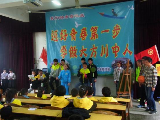 4月17日,川港中学初一年级学生举行了“迈好青春第一步”联合班会。伴随着节奏明快的音乐,来自各班的模特儿穿着款式活泼的校服,大方地走上舞台,或坐,或站,抖着空竹,踢着毽球,携着画架,拍着篮球,抱着书本尽情展现成长的快乐。同学们高唱《少年先锋队队歌》,在团旗下庄严宣誓,与少先队惜别。歌曲《奔跑》、舞蹈《青春韵律操》、诗朗诵《青春》、小品《 蜀国虎将排座次 》,生动活泼,诙谐幽默。校园的礼仪在他们的表演中得到完美演绎。