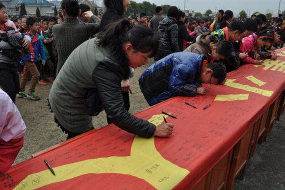 姜灶小学的礼仪教育启动仪式庄严隆重:千人背诵;大队长的倡议书,道出了全校师生践行八礼四仪,争做文明姜小人的坚定决心;千人签名则在每个师生的心灵上烙上了践行礼仪、实现诺言的印记,也播下了讲文明,懂礼仪的信念种子……