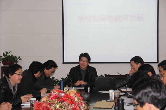 金沙中学李达校长站在学校发展的校本角度,作了《学校发展与教师的专业成长》的主题报告,为全体沙龙成员展示了金沙中学在“学校发展与教师发展”方面的思考与做法。区教科室教科员陆云峰主持了沙龙活动,并在江苏省初中师资队伍建设状况问卷调查的基础上,站在更为宏观的角度为大家作了《基于数据分析的教师发展建议》的讲座,提出了当前推动教师发展的三条建议:一是着力提高教师待遇,提升教师的职业幸福感;二是建立健全教师流动机制,破解均衡教育症结;三是提高培训的针对性和实效性,加速教师专业成长进程。区教科室秦德林主任对活动进行了点评,在肯定研讨成果的同时,再次就“学校发展与教师发展”为全体会员指点迷津。