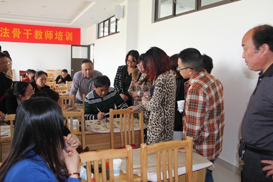 培训中,中国书法家协会会员、江苏省硬笔书法家协会副主席、江苏省国画院特聘书法家、南京市教育学会书法专业委员会理事长陆亚鸿为学员进行了毛笔书法讲座及实训。特别是针对中小学生写字、书法创作中及教学中存在的一些误区,进行了逐一纠正澄清;对一些细节问题给予了详尽的指导,使参训教师能够有法可循。