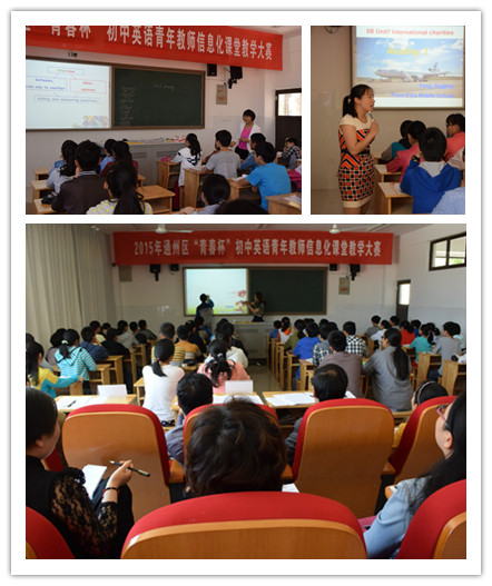 为推进新课程改革和实施课堂有效教学,进一步提高广大青年教师的信息化教学能力,促进青年教师的专业成长,由区教育局团工委与区教育电教中心联合举办的2015年通州区“青春杯”初中英语青年教师信息化课堂教学大赛于5月21日在金郊初中隆重举行。