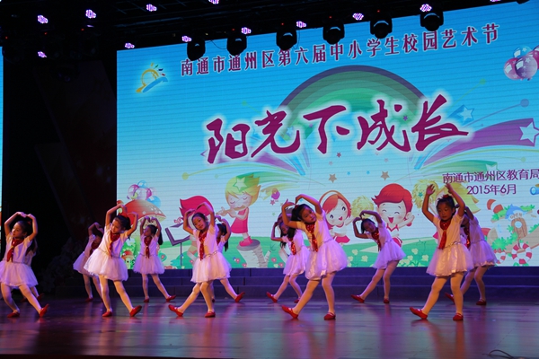 歌声嘹亮,舞蹈优美,6月3日,实验小学蕊春大剧院成了艺术的海洋,区第六届中小学生校园艺术节优秀节目展演在此举行。 合唱《五月的鲜花》、舞蹈《军号声声》、情景剧《海的女儿》、朗诵《我的中国梦》……此次展演共32个节目,均由各中小学校师生精心编排而成。校园剧《快乐小伙伴》曾在省级展演活动中获得一等奖,经过重新排演,该剧又被搬上了本届校园艺术节的舞台。“这个情景剧告诉大家要学好普通话。希望通过我们的表演能让大家有所感触。”主演通州小学学生庄一凡表示。