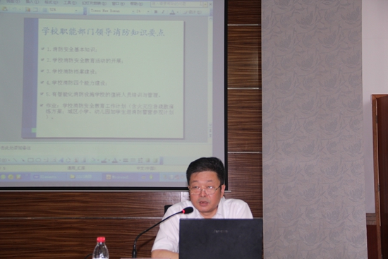 在开班仪式上,区教育局副局长刘新作了“火灾无情,生命无价”的主题讲话。他指出,消防安全责任重大,尤其是学校,一旦发生火灾后果不堪设想。通过前期的消防安全检查,目前学校还存在诸多安全隐患。他希望参加暑期消防安全与管理培训的学员沉下心来,集中精力,认真学习,并且要学以致用。学员培训结束后要结合所学知识,对各自学校存在的消防安全隐患进行全面检查,并及时进行整改,注重硬件建设、软件管理两手抓。要主动和消防大队、当地派出所做好对接,经常性开展相关活动。要强化教育,将消防安全知识纳入教学内容,形成消防安全教育常态机制。要针对不同年龄段学生特点分类开展消防安全教育,小学重点开展火灾危险性、消防安全标志标识、日常生活防火、火灾报警、逃生自救常识教育;初中、高中重点开展消防法律法规、防火灭火基本知识、灭火器材使用、火灾自救互救知识和火灾案例教育。