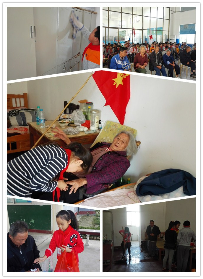 在敬老院,孩子们又唱又跳,给老人唱红歌,讲故事,精彩的表演赢得了老人们的阵阵掌声。节目的最后,还们送上了真挚的祝福,祝愿所有的老人福如东海,寿比南山,健康幸福。表演完节目,孩子们为老人送上自己的一份心意,送糖果,送饼干,还送上自己最真心的服务:擦桌子、剪指甲、梳头发、扫地……望着老人们的脸上漾起了浓浓的笑意,孩子们开心地笑了。(杨志祥)