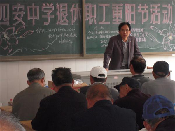 重阳节上午,四安中学近80位退休教职工欢聚“知苑”底楼一间教室,畅所欲言,庆重阳话学校发展。