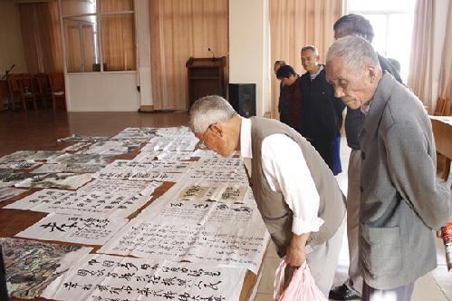老同志的书画展上,一幅幅优美的画卷,一幅幅或是工工整整的楷书,或是飘逸潇洒的行书,或是龙凤风舞的草书,无不体现了老同志们老有所为,老有所乐的退休生活。(单林)
