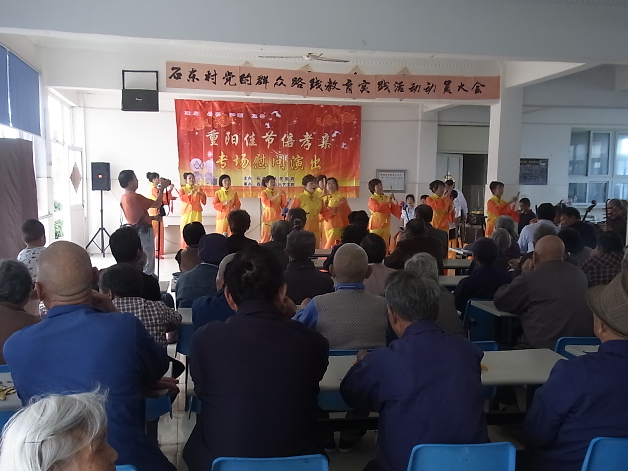 10月20日下午,石港镇社区教育中心联合石港镇四港村老少乐艺文苑在石港镇敬老院举办了“重阳佳节倍孝亲”专场慰问演出活动,与在这里安享晚年的180多位老人共迎重阳节的到来。金辉老校长的诙谐主持、戏曲爱好者的精彩表演赢得了老人们阵阵热烈的掌声。(石港镇社区教育中心)