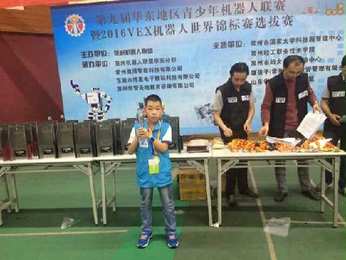 10月23日—25日,第九届华东地区青少年机器人联赛暨2016VEX机器人世界锦标赛选拔赛在常州轻工技术学院举行。通州区实验小学蕊春机器人俱乐部22位小选手勇夺机器人投篮项目冠军,并一举获得华东赛创新奖和优秀组织奖。