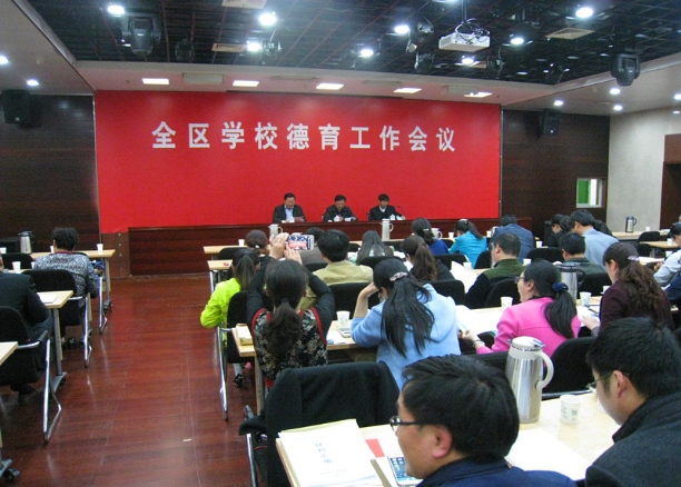 4月15日下午,区教育局召开全区学校德育工作会议。钱国华副局长出席会议并讲了话,他从德育队伍建设、德育课程研发、德育方法创新、德育活动开展、德育特色打造、德育文化构建等方面总结了“十二五”期间全区学校德育工作的成绩,认为全区各中小学以科学发展观为统领,紧紧围绕“立德树人”开展了工作,切实加强了全区中小学生思想道德建设,取得了显著的成绩,形成了生动活泼、扎实有效的德育工作局面。对于新时期的学校德育工作,他要求各中小学以党的十八大和十八届三中、四中、五中全会精神为指导,以立德树人为核心,以《德育三年行动计划》为基线,以德育科研为引领,以课程建设、基地建设为抓手,围绕“创新、协调、绿色、开放、共享”五大理念,不断完善制度建设,着力推进德育队伍建设,强化德育工作质量,打造一批在全区、全市乃至全省全国叫得响的德育品牌,全面提升全区中小学德育工作的针对性、有效性和创新性。各中小学要进一步提高认识,增强做好德育工作的紧迫感和责任感;进一步突出重点,提高德育工作的针对性和实效性;进一步完善做法,提高德育工作的感召力和科学性;要始终坚持全员育人、全科育人、全程育人,重点围绕 “一点四面”(即以立德树人为核心,在各学科教学中重点加强社会主义核心价值观教育、中华优秀传统文化教育、依法治国理念、创新能力培养等四个方面)做足文章,最终达到学生素质有提升、教师境界有提高、育人氛围有改善、德育品牌有影响的德育工作目标。钱局长还对今年的德育重点工作进行了部署。