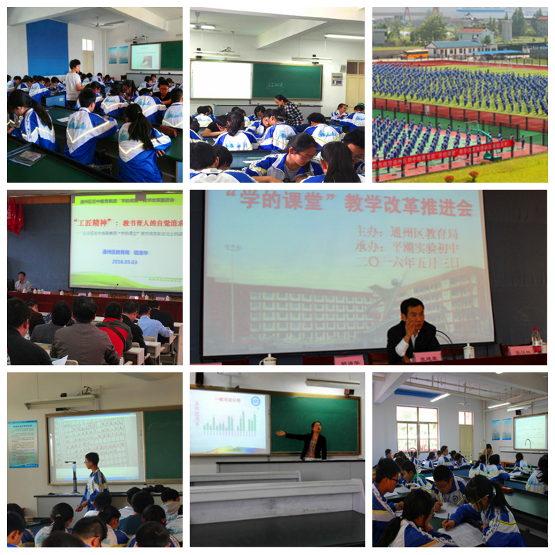 5月3日,通州区初中教育集团“学的课堂”教学改革推进会在平潮实验初中举行。全区各教育督导组组长、中学教学辅导员,教研室相关学科教研员,六个初中教育集团各成员学校校长、分管教学副校长、教务处主任、初三年级主任以及平潮实验初中教育集团各成员学校的初三各科备课组长共150多人参加了推进会。