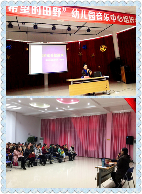 下午,执教老师就设计意图、活动目标、活动过程等环节,进行了说课交流。教研室的徐老师对展示的活动进行了有针对性的点评,并对怎样把握音乐活动重点和难点做了分析和阐述,同时对下学期的研究重点进行了周密的部署。最后,区实验幼儿园的羌轶君主任为参加培训的老师做了《我和童谣做游戏》的讲座。她分享了一首首风趣的童谣,一个个可操作的精彩案例,一段段精彩的童谣视频,老师们纷纷用手机记录着,情不自禁的跟着哼唱着,精彩的讲座将整个活动推向了高潮。