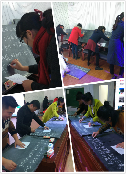 下午,参加比赛的教师们,按照指定内容,进行粉笔字板书设计,横、竖、撇、点、捺……一笔一划工整有力,各位选手用心书写,充分展示了各自的粉笔字书写功底。十分钟的时间,一幅幅富有个性的作品展示在大家眼前。