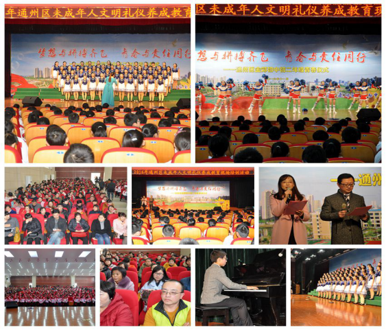 12月1日,“2016年通州区未成年人文明礼仪养成教育现场培训活动”在金郊初中听雨堂举行,来自全区各普通中小学、职业学校、特教学校、局直幼儿园分管德育的副校长和具体负责“八礼四仪”活动的政教处主任以及各教育督导组组长和分管德育工作的领导共170余人参加了活动。区文明办、区禁毒办的领导也应邀观摩了活动。