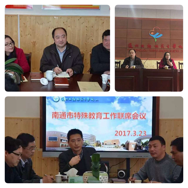 上午9点半,市特殊教育工作联合会议上,各个特教学校的校长交流了本校2017年主要工作,并就指导中心的工作谈了各自的体会以及困惑。经过热烈的交流,校长们达成共识,从容(融,即融合教育)前行,内涵发展,安全第一。南通市教育科学研究院李志丹副院长发表讲话,号召大家用好平台,表达对学校工作的支持,同时提出建议,希望各个学校能不畏困难,做好工作。南通市教育局基教处副处长卢志华部署省特殊教育项目督查工作,表达了几点希望,首先是加强学习,更新观念,其次是活动推动,争先创优,最后是善于宣传,扩大影响。