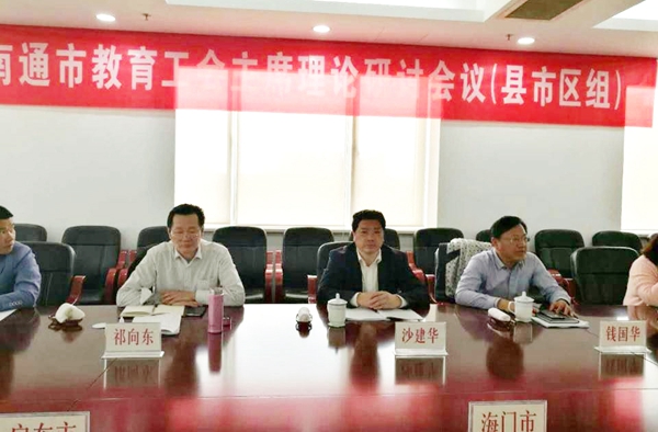 4月20至21日,南通市教育工会主席研讨活动(县市区组)2017年第一次活动在通州区举行。本次研讨活动围绕“以教职工专业成长和岗位成才为着力点,推动校园职工文化建设”这一主题,十个县市区教育工会的负责人进行了热烈讨论,从学习贯彻习近平总书记系列重要讲话和党中央《关于加强和改进党的群团工作意见》精神,到县市区教育工会加强教职工文化建设的具体行动,谈认识,谈实践,谈体会,谈措施和打算,达到了统一思想,相互交流,共同提升的效果。市教育工会副主席、通州区教育工会主席钱卫东同志主持了交流活动,并和大家一起学习了全总2016年10月份印发的《工会基层组织选举工作条例》,传达了省教科工会三届一次全委(扩大)会议主要精神。南通市教育局副调研员、市教育工会主席沙建华肯定了四位一体的教育工会主席理论研讨模式,要求各县市区教育工会不辱使命,建设党政满意、教职工贴心的教工之家,要维护教育改革发展的大局,进一步协同党政参与学校治理创新,进一步开展“践行新理念建功十三五”活动,进一步丰富教职工文化生活,进一步发挥互联网+的作用。