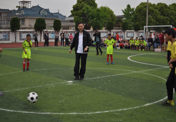 5月2日下午,2017年通州区小学组校园足球联赛决赛在姜灶小学举行,兴东小学和姜灶小学两支足球队进入决赛,区教育局局长张进荣为比赛开球。区体育局局长助理陈克、基教科虞益新老师、通南片督导组分管领导与近千名师生观看了本场决赛。