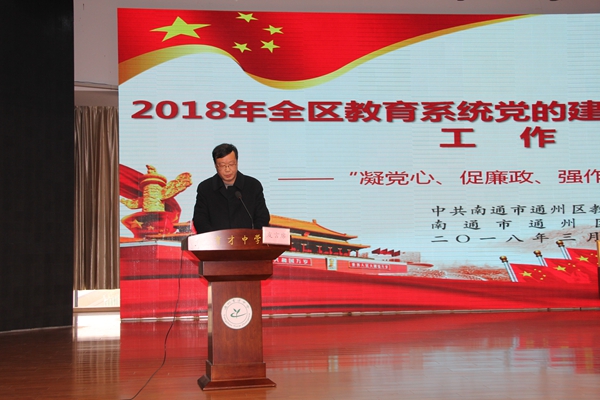 张进荣强调,2018年全区教育系统党建工作要以“推动全面从严治党向纵深发展”为目标,以开展教育系统“通州区中小学基层党组织建设三年行动”为抓手,进一步推动全区教育系统党的建设规范发展、融合发展、创新发展。一是把握核心要求,突出政治建设。加强党对教育工作的全面领导,突出党组织的政治功能,严肃党内政治生活;二是树立鲜明导向,加强思想建设。深入学习贯彻十九大精神,推进“两学一做”常态化制度化,重视宣传思想和文明建设;三是夯实基层基础,推进组织建设。推进规范化标准化建设,严格建设过硬党支部,加强党员队伍建设;四是坚持融合发展,优化培养管理。加强干部人才队伍管理,建立教育系统党建品牌体系,做好统战群团老干部工作。