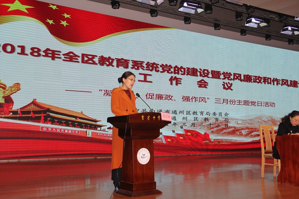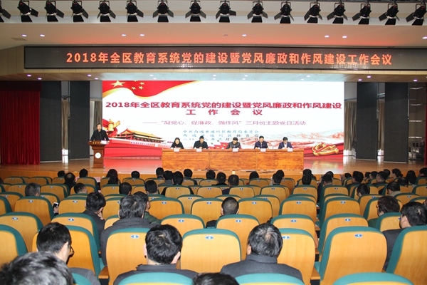 3月23日下午,区教育局召开2018年全区教育系统党的建设暨党风廉政和作风建设工作会议,全区各级各类学校校长、党组织书记、纪委书记及各教育督导组、教育局机关、区政府教育督导室、局直事业单位全体成员,以及教育系统全体行风监督员、责任督学和廉政教育宣传员参加会议。这也是全系统集中开展的以“凝党心、促廉政、强作风”为主题的三月份主题党日活动。