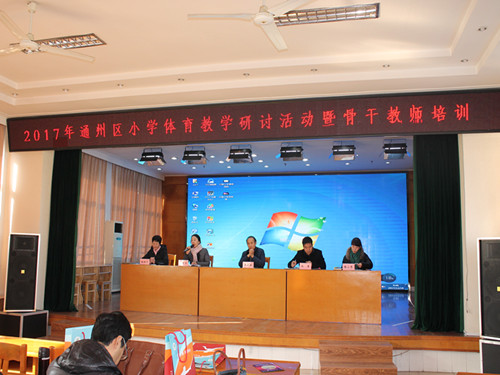12月18日,通州区小学体育教学活动暨骨干教师培训在通州区川港小学顺利举行。通州区教育局虞益新老师、邱军老师、区体育初高中中心组组长、小学中心组全体成员及全区45所小学体育骨干,共80余人参加了此次研讨活动。会议由小学中心组组长施丽华校长主持。