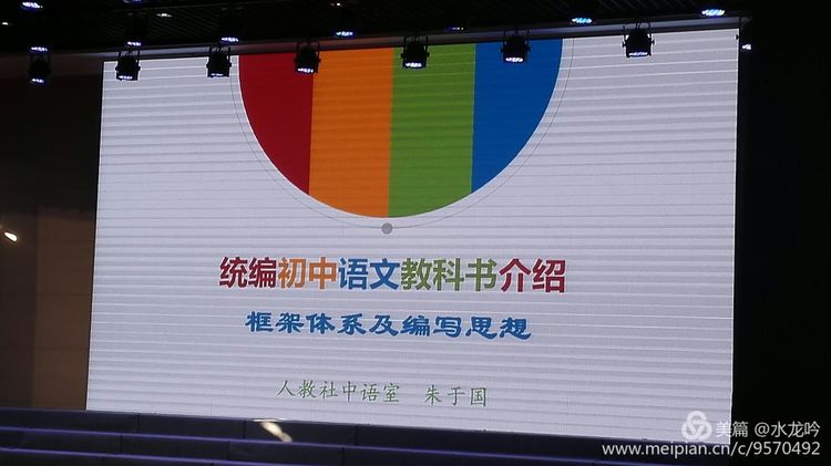 上午的讲座题为《统编初中语文教科书介绍一一框架体系及编写思想》。朱于国主任从宏观着眼,通过“立德树人”“语文素养”“阅读体系”“多方共建”四个关键词准确把握部编语文教科书的特点。介绍了新编教材为落实“立德树人”而采用的“整体规划,有机融入,自然渗透”的基本思路,以教材选文为主要教材,辅以精心设计的语文实践活动,使学生在学习语言文字的过程中潜移默化地受到熏陶感染,逐步树立正确的思想观念和高尚的道德情操,最终使社会主义核心价值观、中华优秀传统文化、革命传统教育等内化为精神追求,外化为自觉行为,从而更好地达到课程标准要求的工具性与人文性的有机统一。