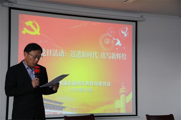 10月26日,时值党的十九大刚刚闭幕,区教育局在教师发展中心召开主题党日活动,活动主题为“迈进新时代 续写新辉煌”,活动共分两个阶段进行。教育局机关、区政府督导室和局直单位全体党员,以及部分乡镇中小学党组织书记参加活动。