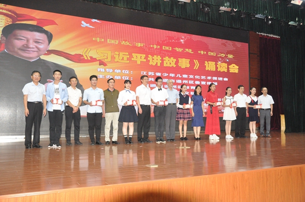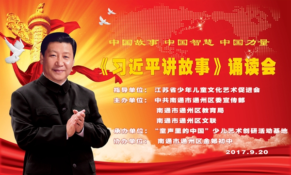 9月20日下午,金郊初中听雨堂内高朋满座,由江苏省少年儿童文化艺术促进会指导,通州区委宣传部、区教育局、区文联主办,“童声里的中国”少儿艺术创研活动基地承办的南通市通州区首场《习近平讲故事》诵读会在这里举行,全区31所中学800多名学生代表参加了此次活动。