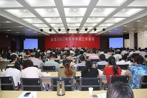 8月26日下午,区教育局在行政中心第一会议室召开2017年中学校工作会议,对上一学年度工作进行总结,同时全面部署新一学年工作。全区各级各类学校主要负责人,各教育督导组组长,局直单位负责人,局机关、督导室中层以上干部等150余人参加会议。